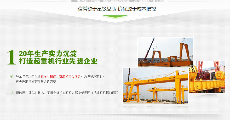 靖江市起重設(shè)備廠(chǎng)家直銷(xiāo)懸臂起重機(jī)、固定式懸臂起重機(jī)、單雙梁橋式起重機(jī)、簡(jiǎn)易門(mén)式起重機(jī)、電動(dòng)葫蘆門(mén)式起重機(jī)型號(hào)齊全,價(jià)格合理 - 座落在美麗富饒的江浙平原,魚(yú)米之鄉(xiāng)--江蘇省靖江市,位于長(zhǎng)江之濱。毗鄰江陰長(zhǎng)江公路大橋, 與江陰、張家港隔江相望,緊鄰上海、南京、蘇州、無(wú)錫等發(fā)達(dá)的大中城市,經(jīng)濟(jì)環(huán)境和地理位置得天獨(dú)厚。 緊靠京滬、寧通高速公路 公路和水路交通極為便利。